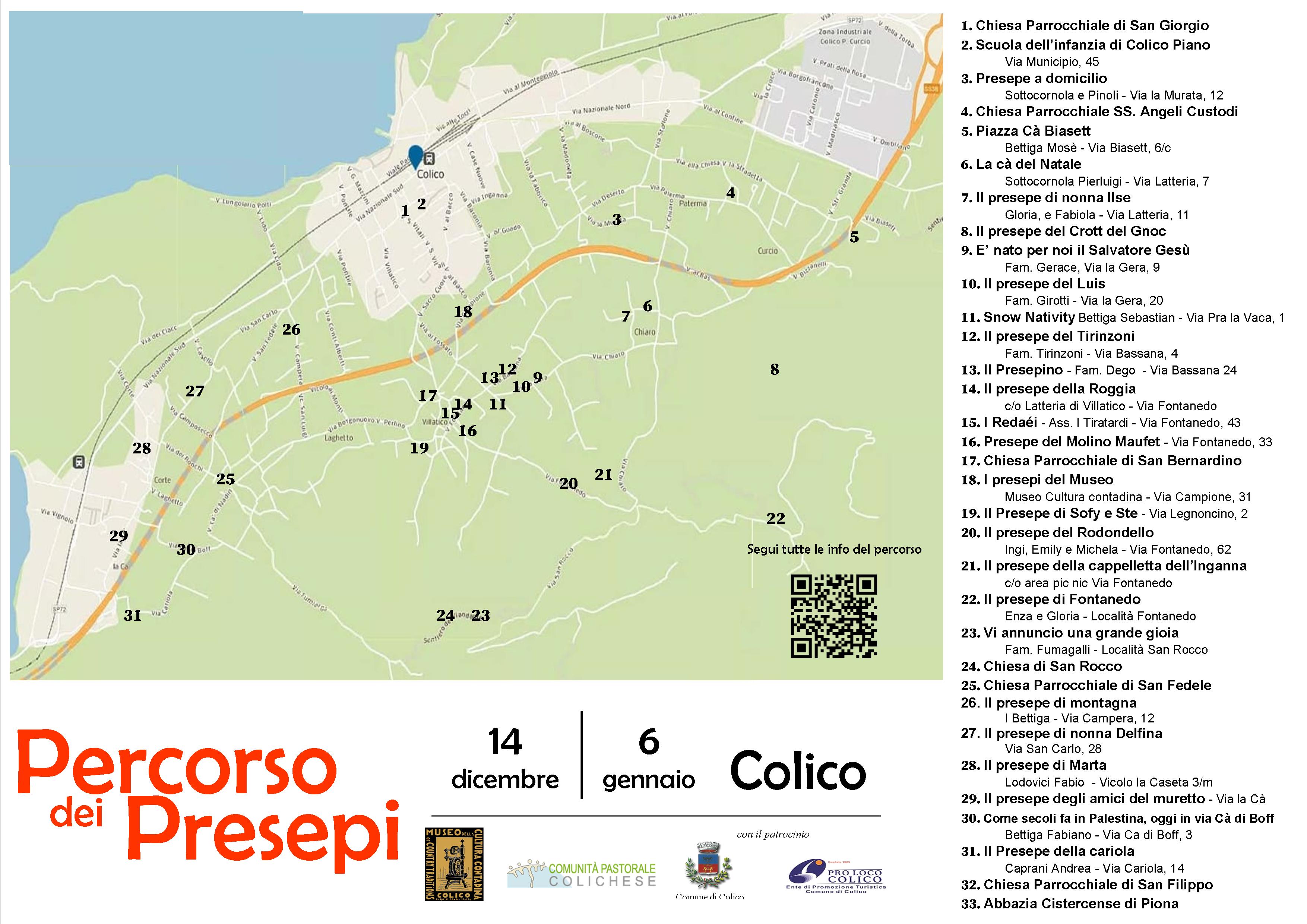 Dal 14 dicembre 2025 al 6 gennaio 2026 torna a Colico il tradizionale Percorso dei Presepi: un itinerario suggestivo tra le vie e gli angoli caratteristici del paese e delle sue frazioni, dove presepi artigianali di ogni forma e dimensione raccontano a grandi e piccini la magia del Natale.